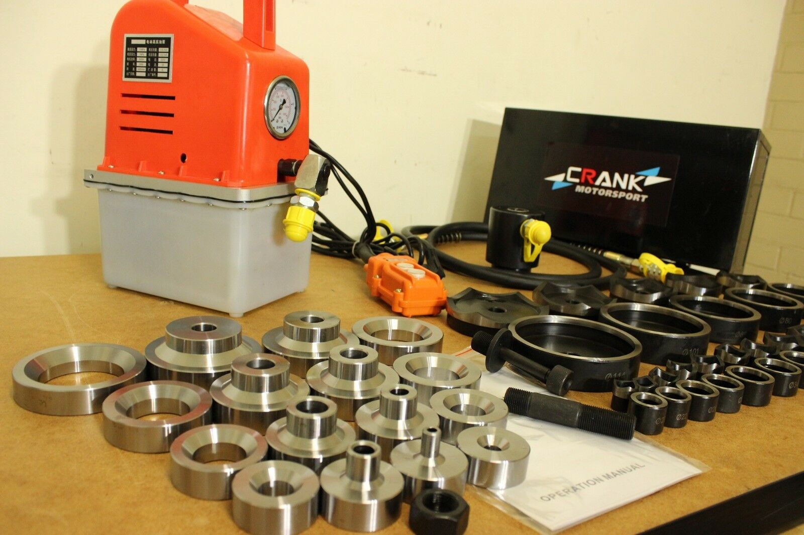 Instock ready to go.Brand New in box 56 Pcs Electric Powered Hydraulic Hole punch dimple die set. Professional’s choice for all sheet metal worksThrow away the messy hole saw, and forget about not able to find the hole saw size for the dimpleJust clean cut and dimple EVERY TIME. Kit is completed with mega 56 pcs cutter and dimple all the way from 12mm (1/2″) to 100mm (4″) shaft diameter dimple. dimple dies are make to suit the cutter with perfect fitment for perfect dimple every time